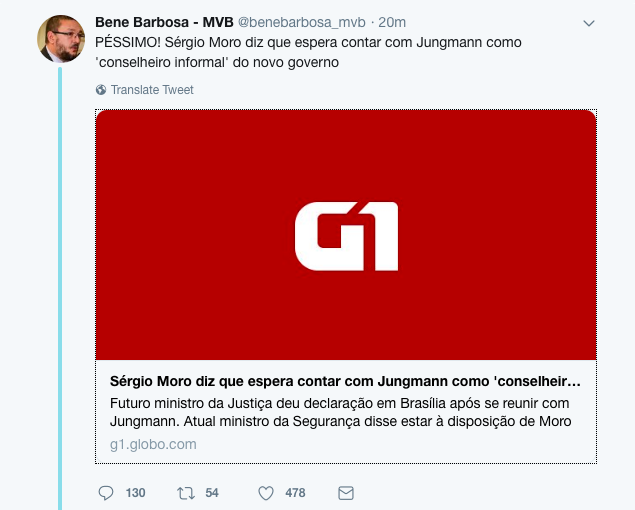 Na mesma linha de atuação, Sergio Moro declarou que espera contar com o ministro da Segurança, Raul Jungmann, como um “conselheiro informal” .