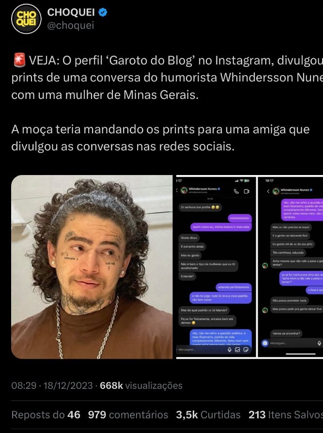 O perfil é acusado de provocar a morte da jovem, que foi vítima de uma fake news ao ser apontada como o novo affair do humorista Whindersson Nunes. Confira: