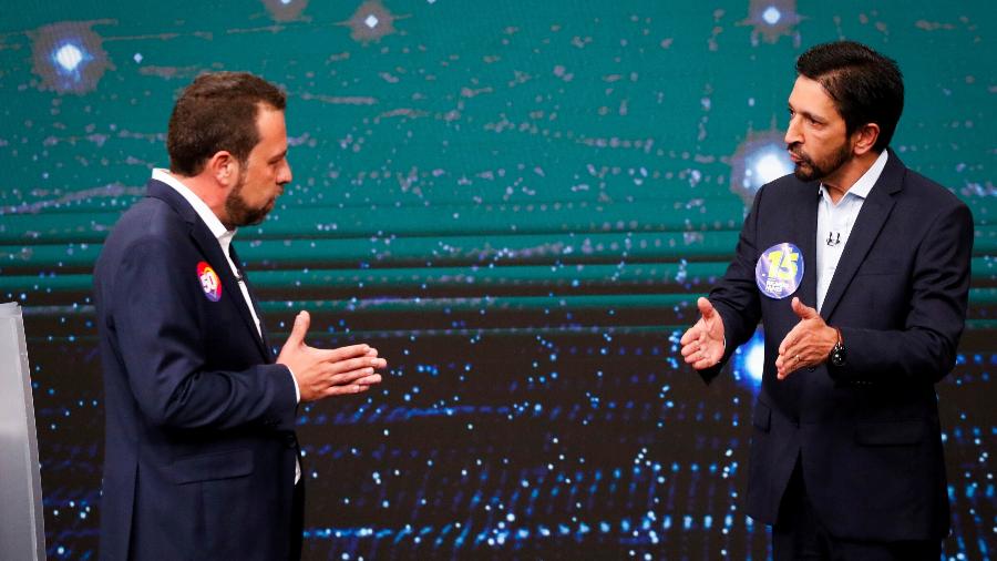 Guilherme Boulos (PSOL) e Ricardo Nunes (MDB) durante debate na Band. Foto: Aloisio Mauricio/Fotoarena/Estadão Conteúdo