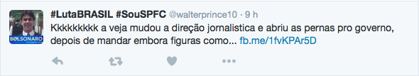 Para a Veja publicar, é um recado forte. O garoto do Paraná que mudou o Brasil não pode tudo numa democracia — a não ser para os leitores da Veja, que ficou refém do tipo de imbecil de extrema direita que a revista cultivou ao longo dos anos.
