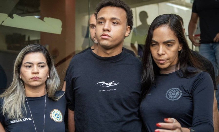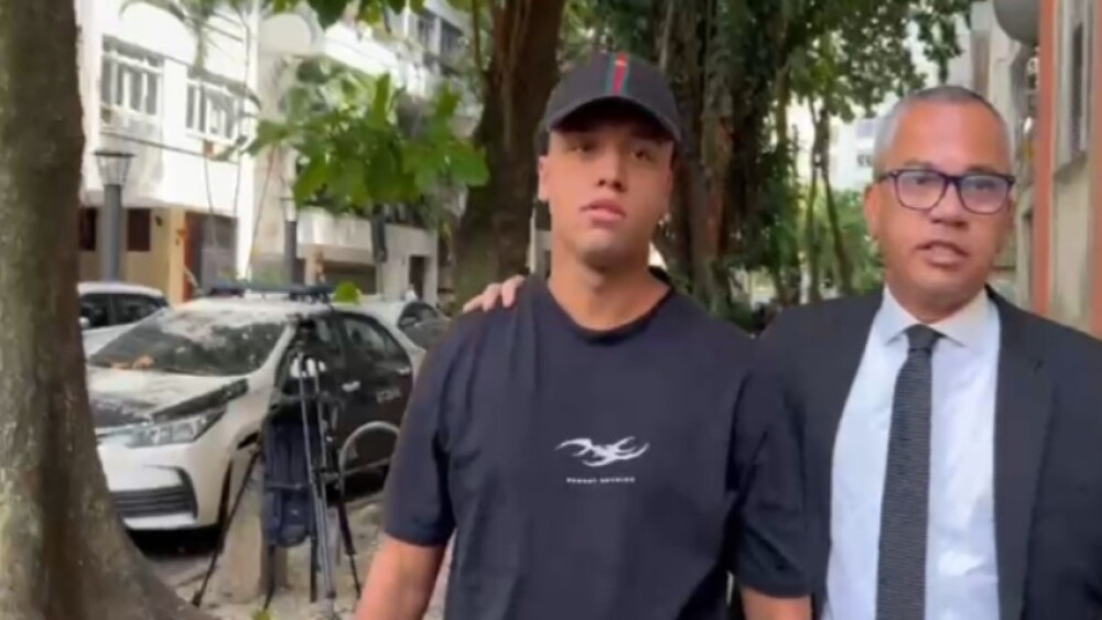 Vitor Hugo Simonin, acusado de envolvimento no estupro coletivo de uma jovem de 17 anos no Rio de Janeiro, se entregando à polícia. Foto: Divulgação