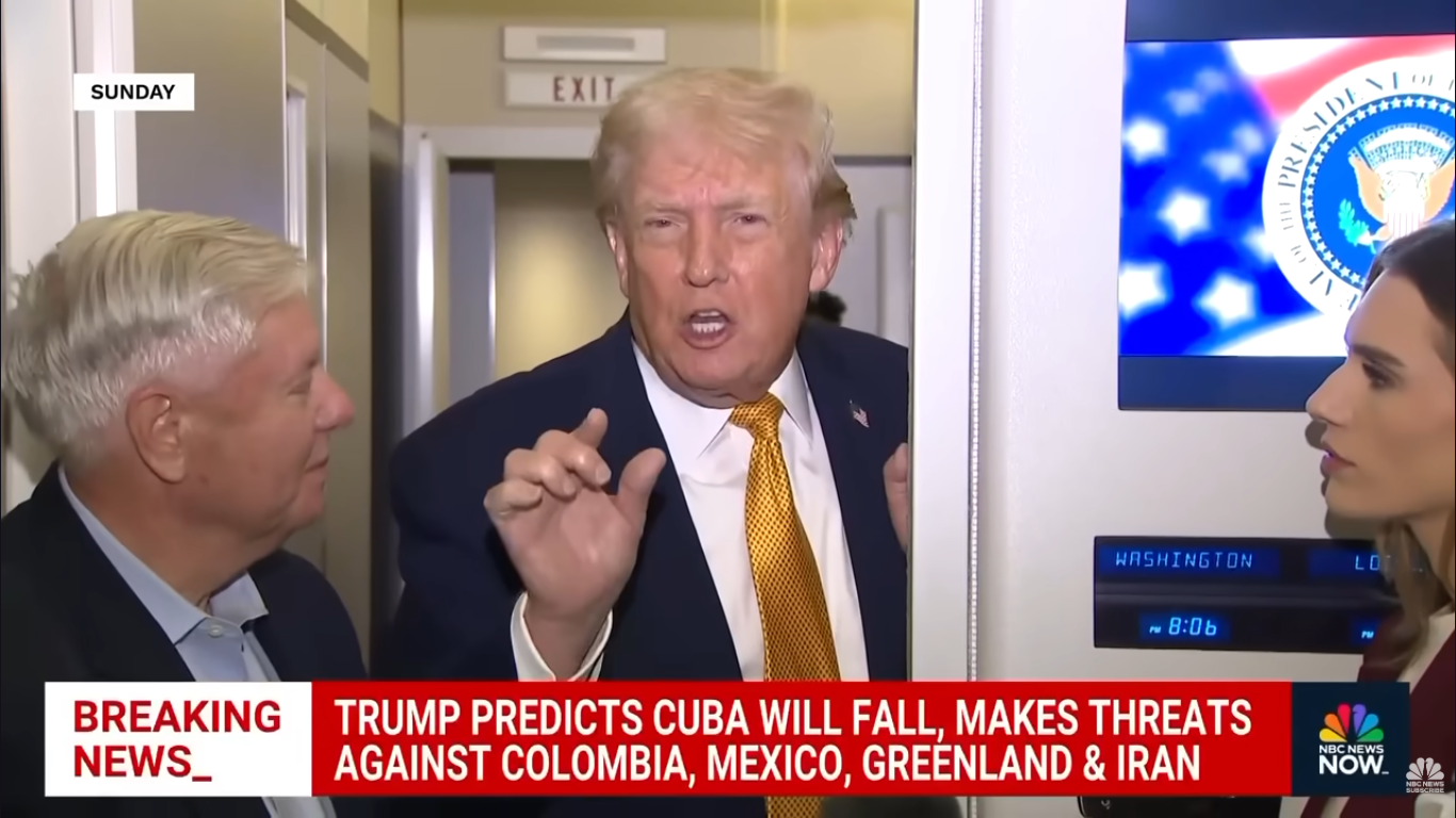 Trump declarou que os Estados Unidos estão em conflito “com traficantes”, e não diretamente com a Venezuela, ao comentar a operação militar que resultou na captura de Nicolás Maduro. Ele acrescentou que outros países estariam enviando criminosos e dependentes químicos para território norte-americano.