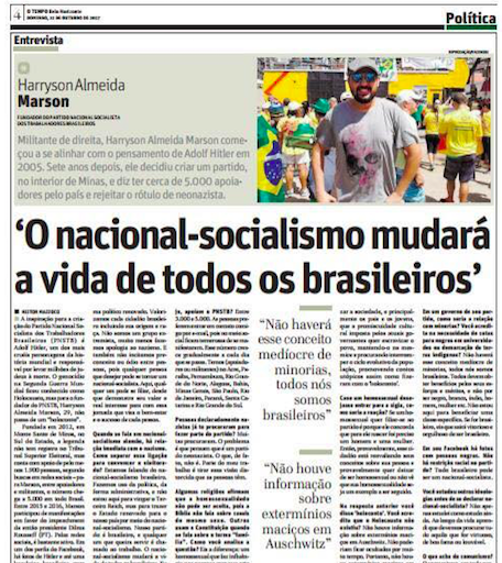 O jornal O Tempo, de Minas Gerais, achou por bem dar espaço a um nazista defender suas “teorias”. Um bom espaço.