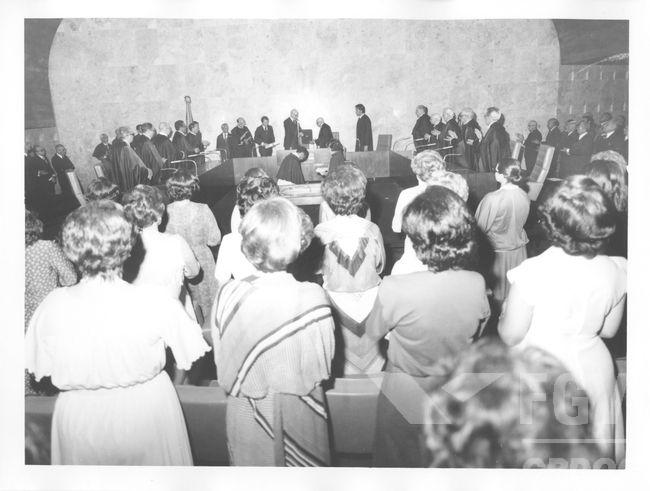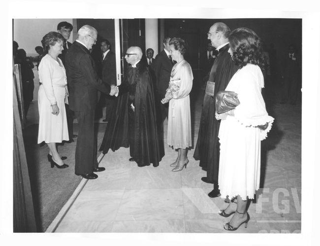 As fotos dessa visita de Geisel ao Supremo, guiada por Carlos Thompson Flores (vestindo a capa preta), estão disponíveis no Centro de Pesquisa da FGV: