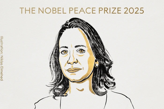 A líder opositora venezuelana María Corina Machado venceu o Prêmio Nobel da Paz de 2025, anunciado nesta sexta-feira (10) pelo Comitê Norueguês do Nobel, em Oslo. O reconhecimento destaca sua atuação em defesa da democracia, dos direitos humanos e das liberdades civis na Venezuela. Ela é uma das principais vozes contra o presidente Nicolas Maduro