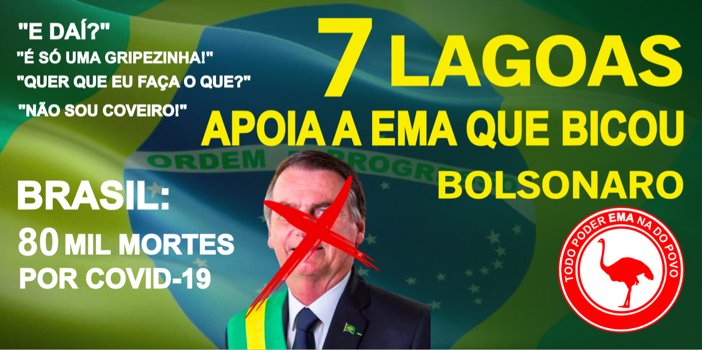 O texto diz o seguinte, em letras garrafais: “7 Lagoas apoia a ema que bicou Bolsonaro”.