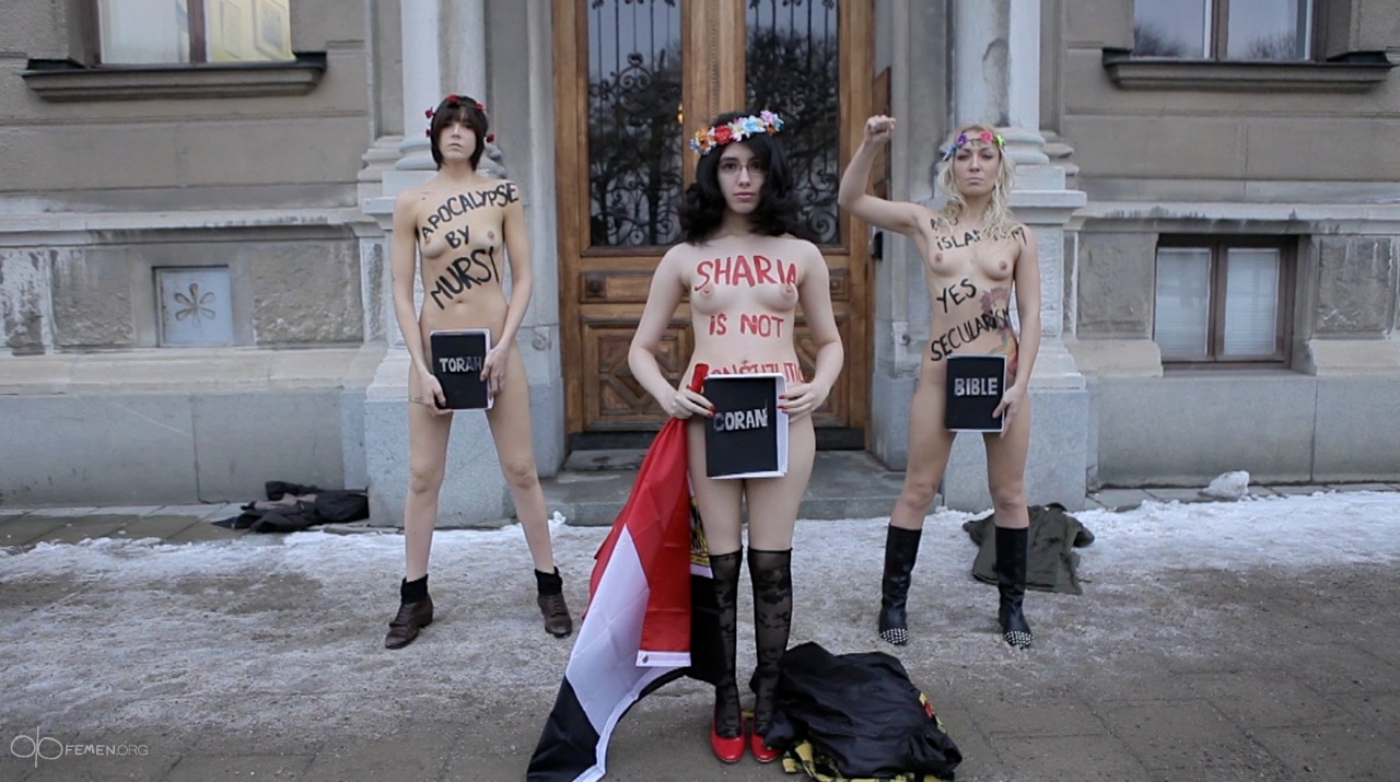 Alya retornou agora ao noticiário, na companhia do Femen, o grupo feminista ucraniano que, como ela, fez da nudez a principal arma de protesto. Em Estocolmo, num frio glacial, Alya e o Femen uniram forças, e corpos nus, para protestar contra a islamização do Egito pretendida pelo presidente Morsi.