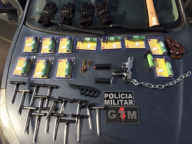 O arsenal pego com um “manifestante” no acampamento do MBL em Brasília