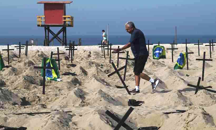 A organização Rio de Paz fez na praia de Copacabana um protesto contra a traagédia do governo federal no combate ao coronavírus.