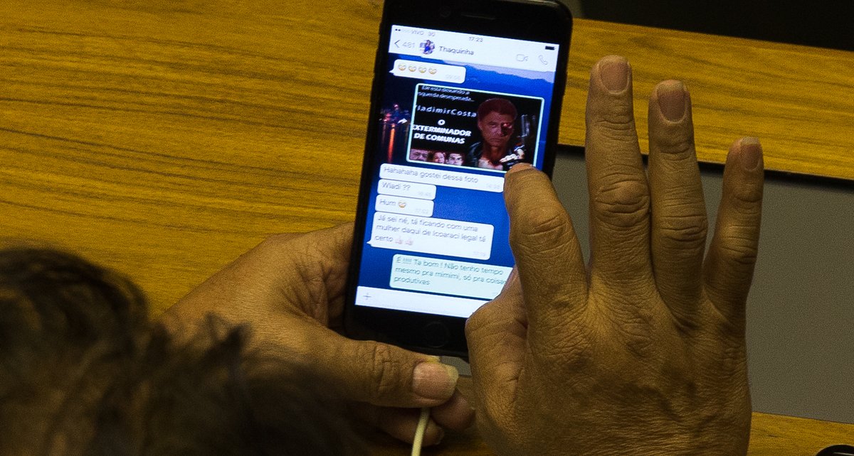 Nos momentos de relaxamento, WC trocava mensagens no WhatsApp com seu eleitorado. O fotógrafo Lula Marques, novamente, não piscou e flagrou a conversa. “Mostra a sua bunda”, diz ele a sua interlocutora (veja as imagens abaixo).