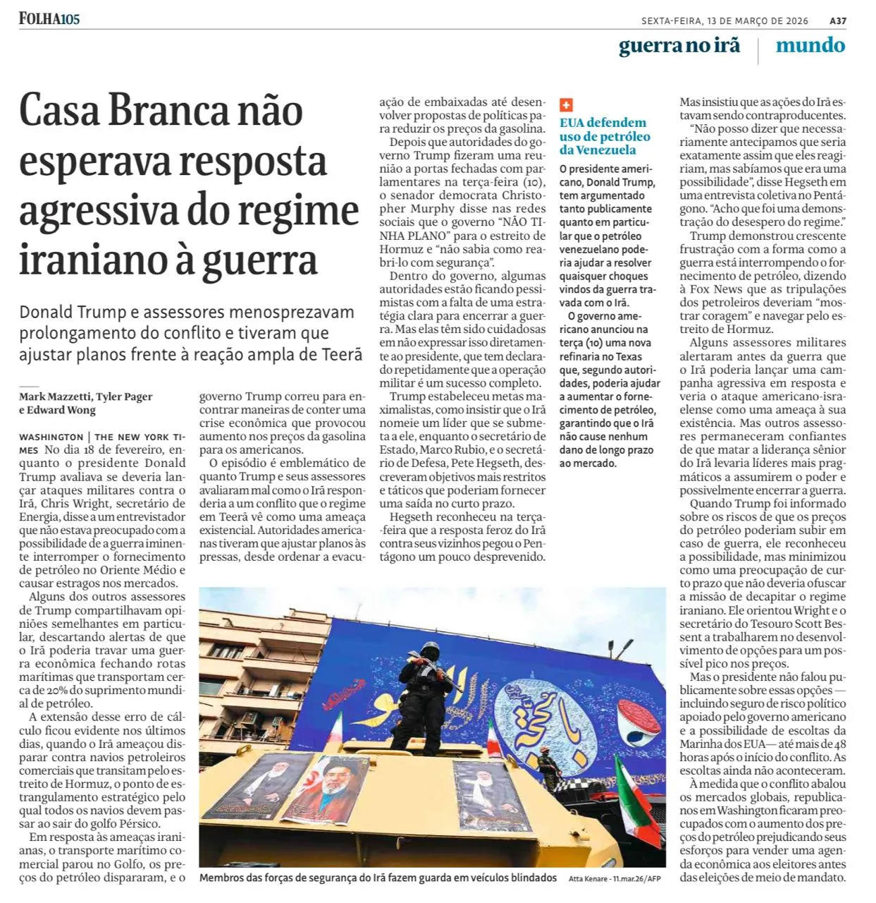 Agora, ao que parece, ele está atordoado com o desenrolar dos acontecimentos. A Folha de S. Paulo, que ainda consegue surpreender, publicou reportagem sob o título “Casa Branca não esperava resposta agressiva do regime iraniano à guerra”. Caramba, eles recebem uma chuva de mísseis e é a resposta que é “agressiva”?