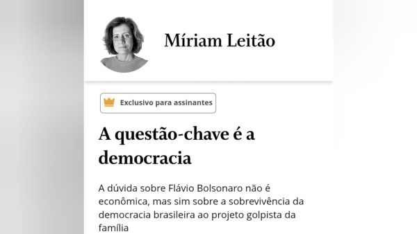 “A ideia de que falta a Flávio Bolsonaro apenas divulgar um plano de ajuste fiscal para ser um bom candidato impressiona pela falta de respeito à História recente do país. A principal questão do candidato do PL não é que cortes ele fará em qual despesa pública, mas sim que garantia tem a democracia brasileira de sobreviver a um segundo governo Bolsonaro. Flávio Bolsonaro é filho do ex-presidente que está preso por tentativa de golpe de Estado. Ele defende o pai, jamais se afastou dos ideais autoritários da família, é apoiado pelos seguidores do ex-presidente, disse que sua prioridade é indultar o pai e anistiar todos os envolvidos. Precisará desenhar para ser entendido?”