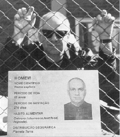 Combinei com o diretor do Zoo de Bauru – um dos melhores do Brasil, aliás – passar um dia assumindo o animal que eu sou ao público visitante. Os caminhos do parque traziam cartazes indicando que “o mais perigoso animal do mundo” estava em exposição. Elas informavam que eu pertencia a uma espécie predadora e irracional que estava provocando um desastre sem precedentes no planeta. Eu mesmo.