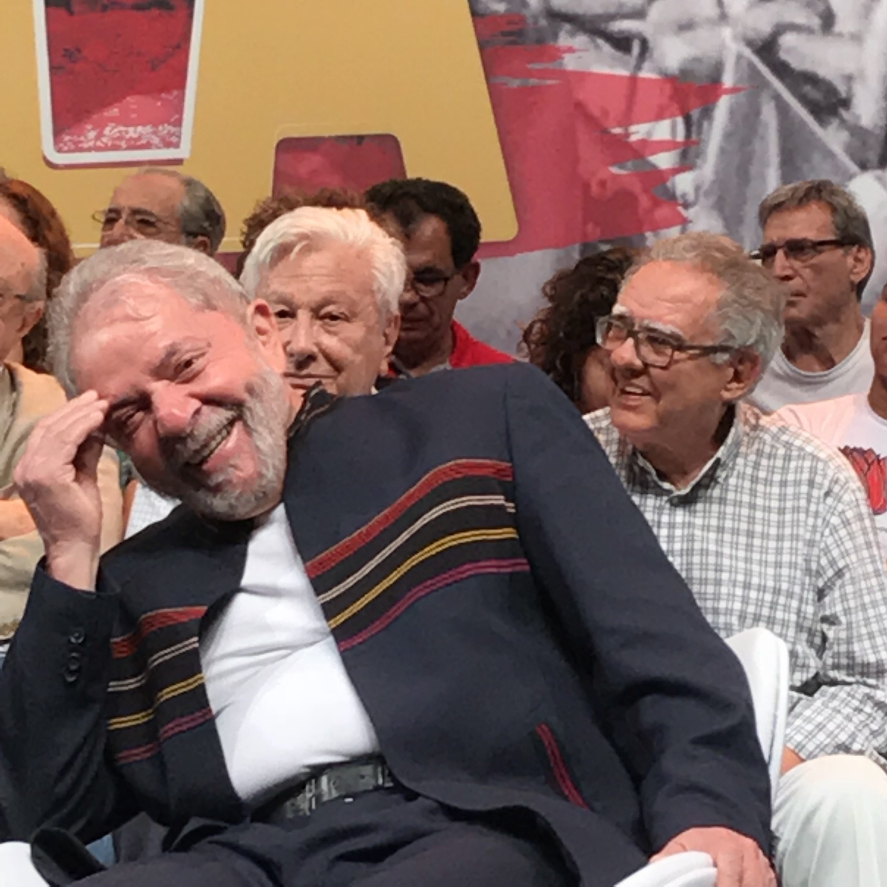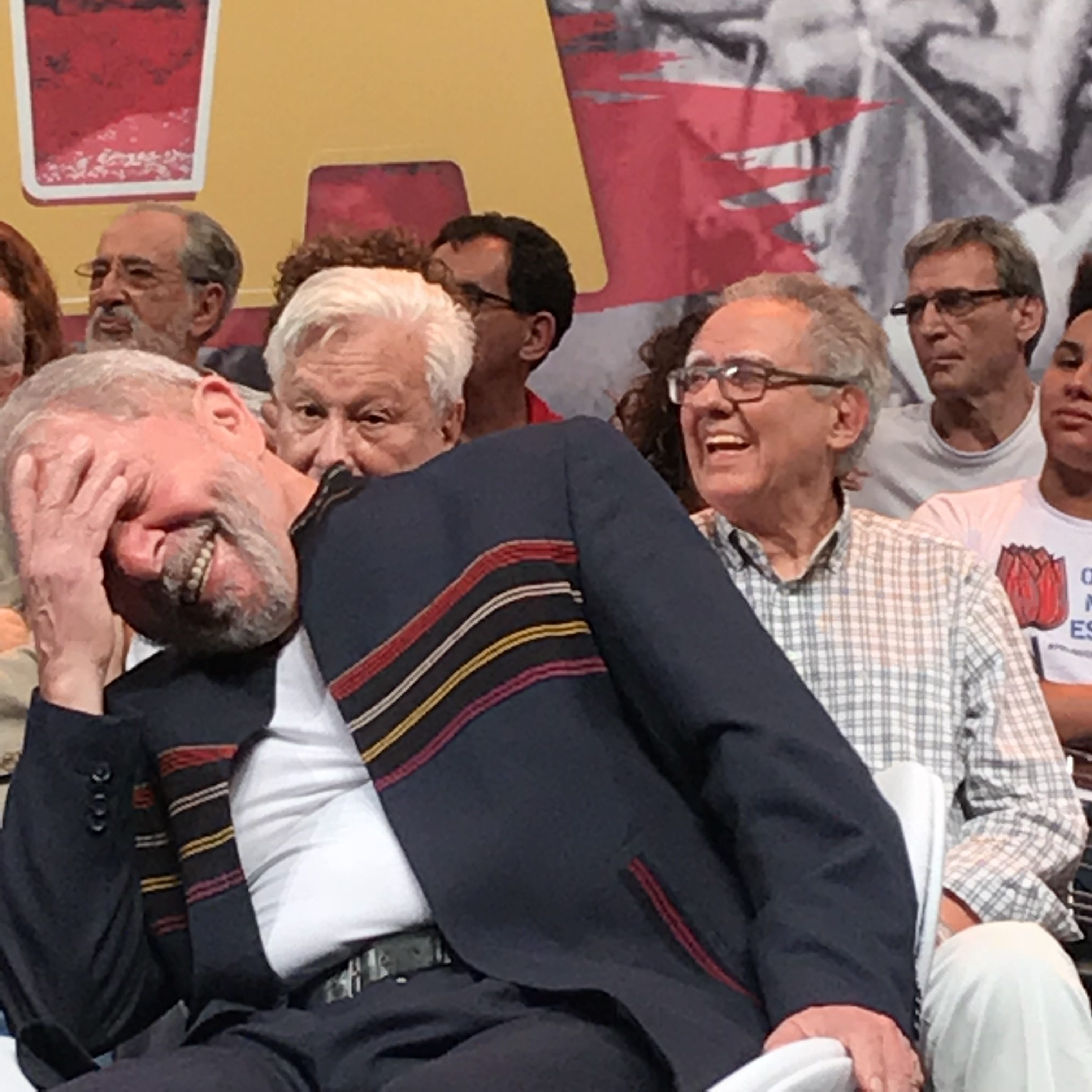 Trata-se de um flagrante do ato de artistas e intelectuais em apoio a Lula numa casa de espetáculos no Leblon, no Rio de Janeiro.