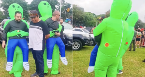 Policiais civis disfarçados de extraterrestres prenderam três homens suspeitos de vender bebidas adulteradas durante o megabloco da cantora Ivete Sangalo, realizado neste sábado (7),...