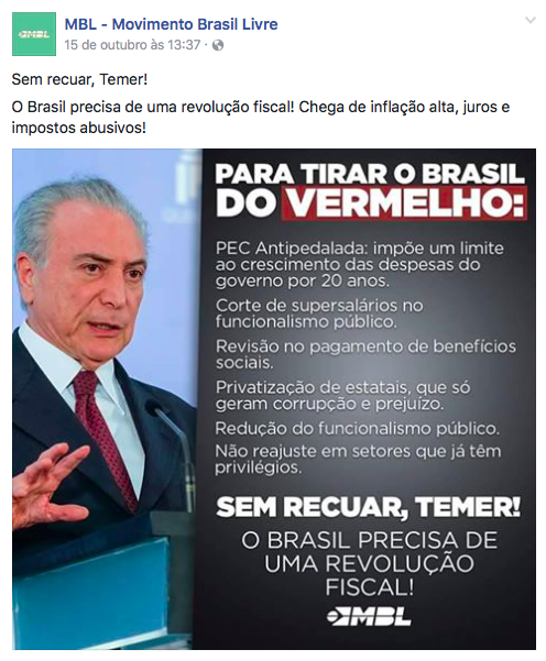 Para chegar a um impossível resultado menos vergonhoso em sua avaliação e na de seus planos, a gestão Michel contratou os serviços do MBL, querendo repetir uma parceria já vitoriosa na campanha do golpe (lembrando: PMDB, PSDB e DEM bancaram as manifestações “espontâneas” e a estrutura dessa milícia, segundo um de seus líderes).