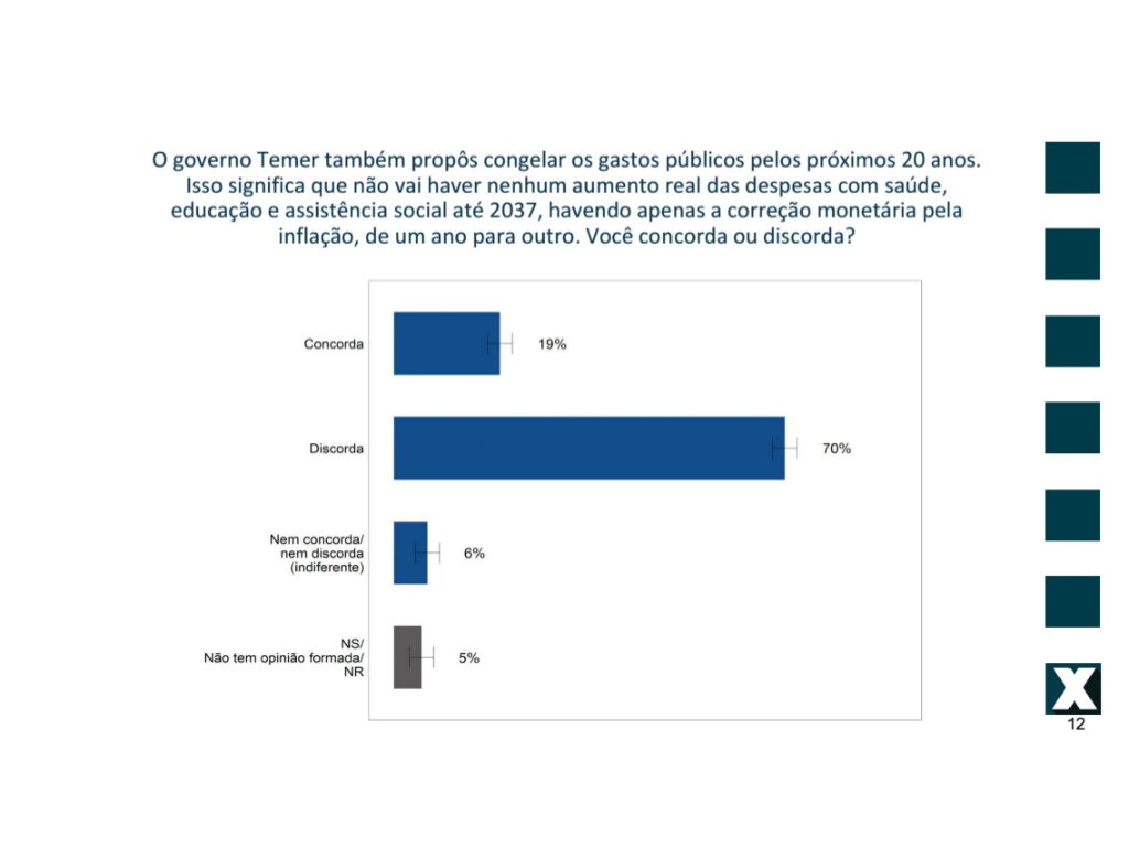 Pesquisa do Vox Populi encomendada pela CUT diz que a PEC é reprovada por 70% da população, sendo que apenas 19% dos entrevistados disseram ser favoráveis e outros 11% são indiferentes, não sabem ou não responderam.