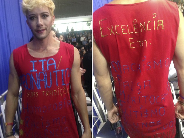 Talles de Oliveira Faria, formando do curso de engenharia do reputado ITA, Instituto de Tecnologia Aeronáutica, de São José dos Campos (SP), fez um protesto durante a solenidade de colação de grau do sábado, dia 17.