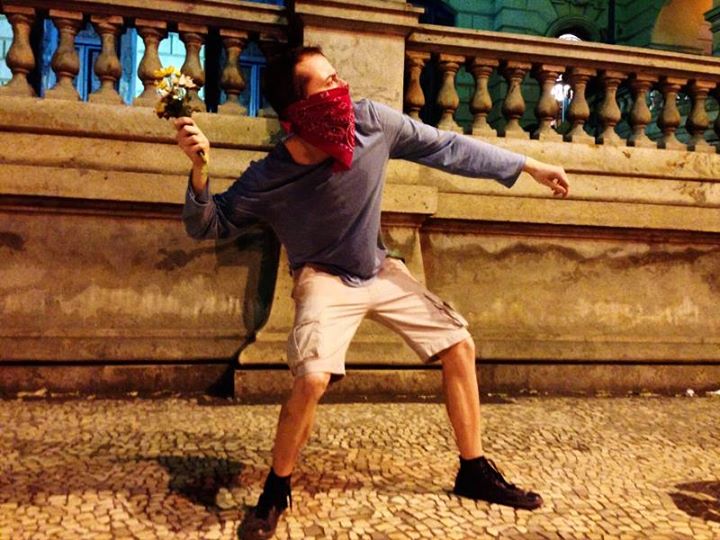 Rafucko é um tipo de “revolucionário”, digamos, descomprometido. Não é o único. No primeiro vídeo, ouvem-se vozes de garotas falando, entre risadas: “Joga gás pimenta aqui!” É como se torcessem para que os soldados chegassem duro. Quando eles aparecem, Rafucko não pensa em parar de filmar. Numa situação mais dramática, que envolvesse grande risco, quem cogitaria em deixar a câmera ligada, estando com a cara no chão, a polícia fascista na cola?