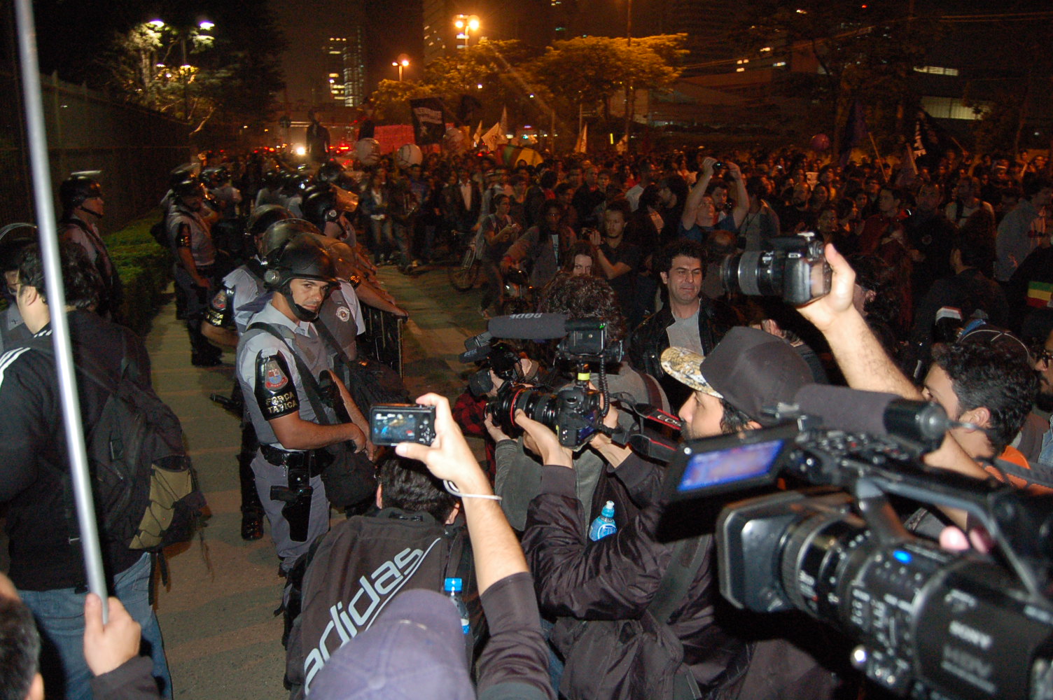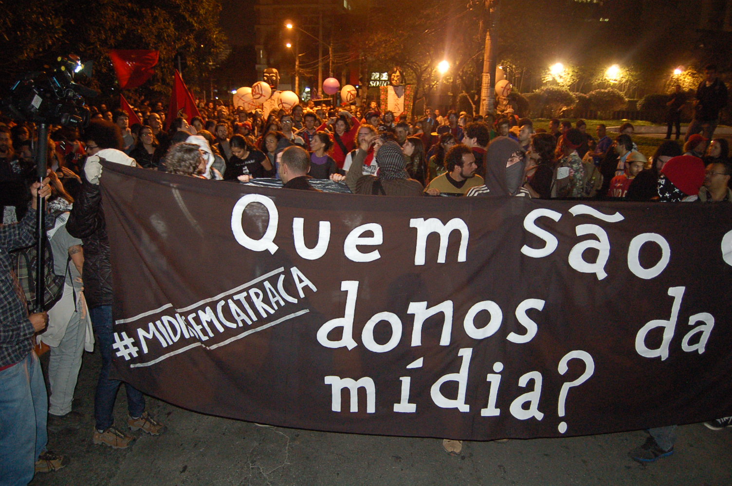 Ontem, o MPL protagonizou o protesto contra o monopólio da mídia. Fez-se muito barulho em frente à Rede Globo. Um “raio laser” foi disparado contra o rosto do apresentador Carlos Tramontina durante o SPTV. Perguntei a Mayara Vivian, do MPL, se essa causa eles abraçariam para valer. A posição, segundo ela, é manter o foco na questão do transporte, apoiar algumas outras manifestações, mas tudo “pontualmente”. “Se estivermos de bobeira, iremos, senão, não”, afirma.