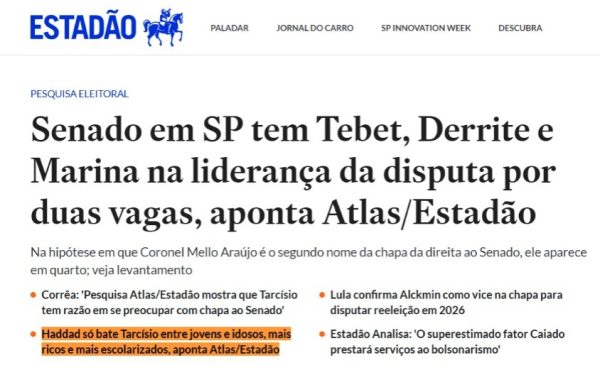Estadão distorce pesquisa para favorecer Tarcísio de Freitas. Foto: Reprodução
