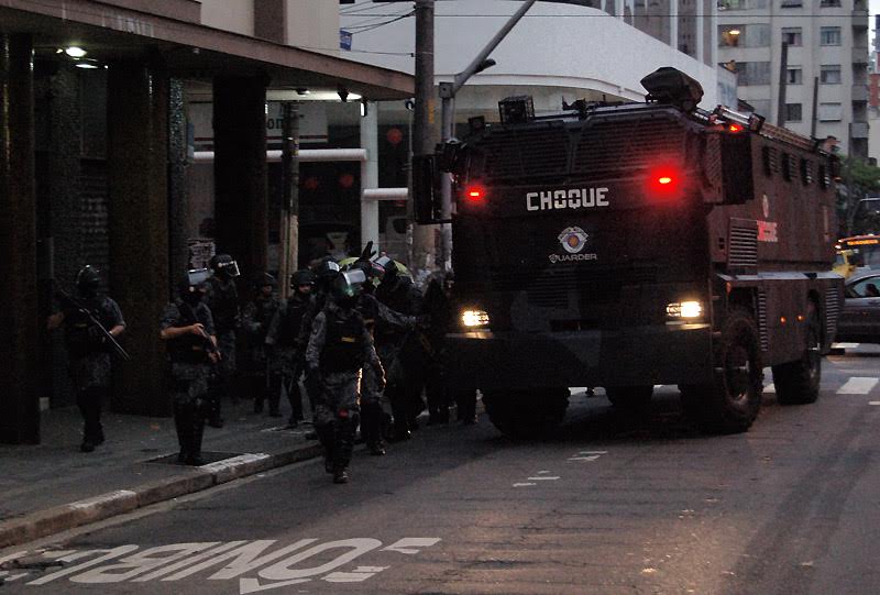 Na debandada pelas ruas da região, uma constatação assustadora. Viaturas da ROTA empenhadas na caça aos manifestantes. Sim, além dos blindados de R$ 5 milhões, da Tropa de Choque, da Tática, das Rocam e da exibicionista Tropa do Braço, também a ROTA. A Rondas Ostensivas Tobias Aguiar, unidade de elite da PM mais que conhecida pela sua letalidade e por uma definição sinistra segundo ela própria: “Deus cria e a Rota mata” (dita aos gritos pelo operarativo militar no dia do massacre no Carandiru).