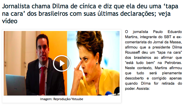Este é o caso da Folha Política. Criado em fevereiro de 2013, o site normalmente não tem autores e nem sequer um email de contato disponível, exceto a caixa de mensagens da fanpage no Facebook. Registrado em um domínio .org, se define como uma organização para debate político. Para quem?