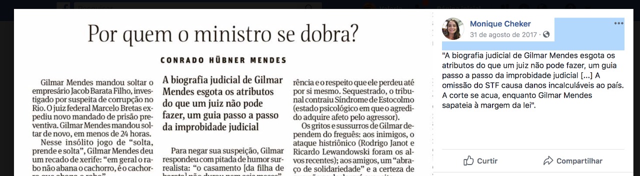 O histórico da indicação de Gilmar Mendes por FHC, entre outros, jamais é lembrado.
