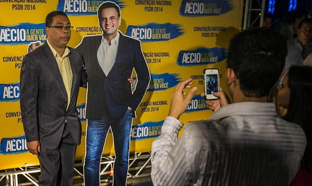 Mas houve pelo menos uma inovação que ficará para a crônica política como um dos símbolos do PSDB: bonecos em tamanho natural de Aécio, feitos de papelão, armados para os militantes tirarem fotos.