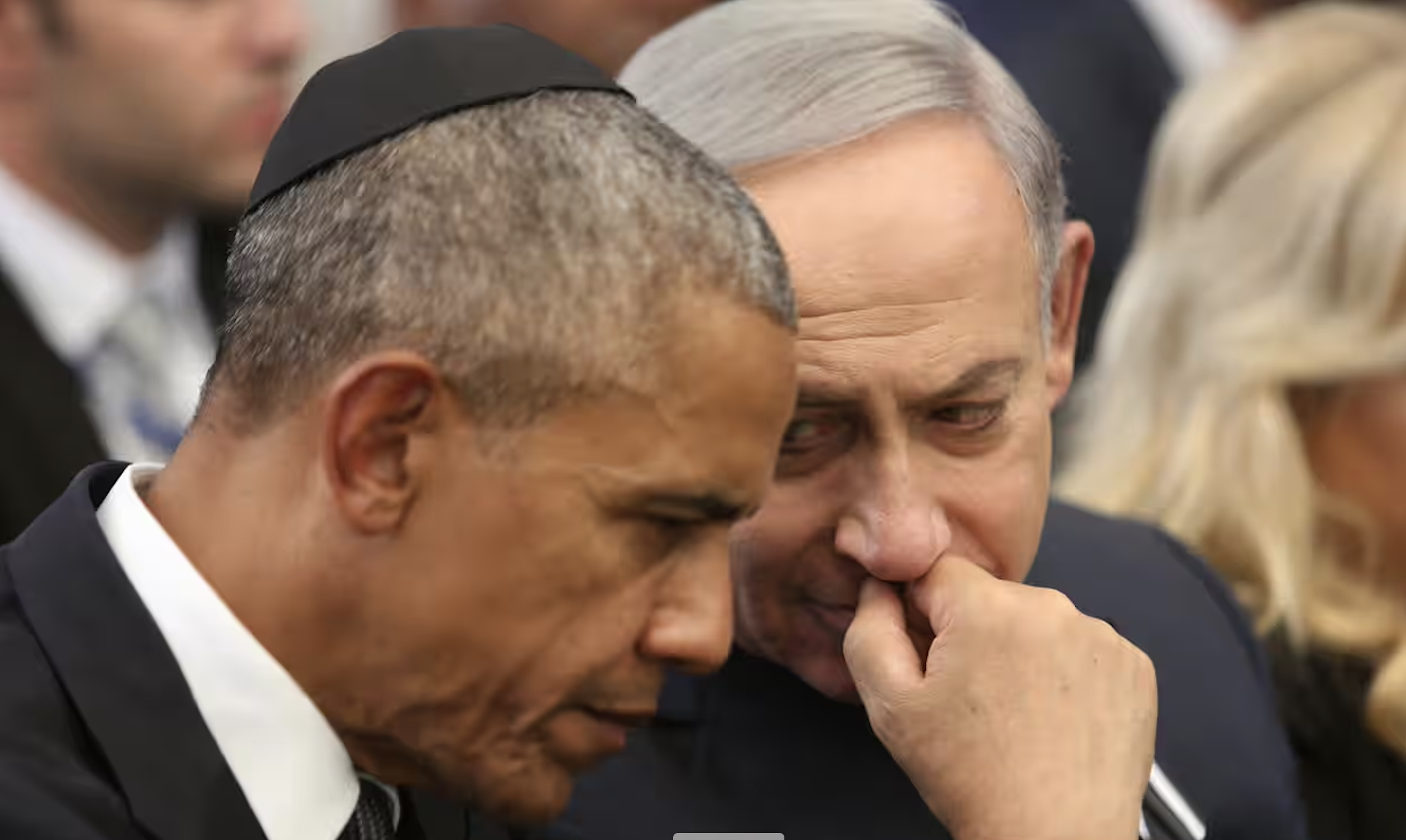 Obama com Netanyahu no funeral de Shimon Peres em setembro de 2016