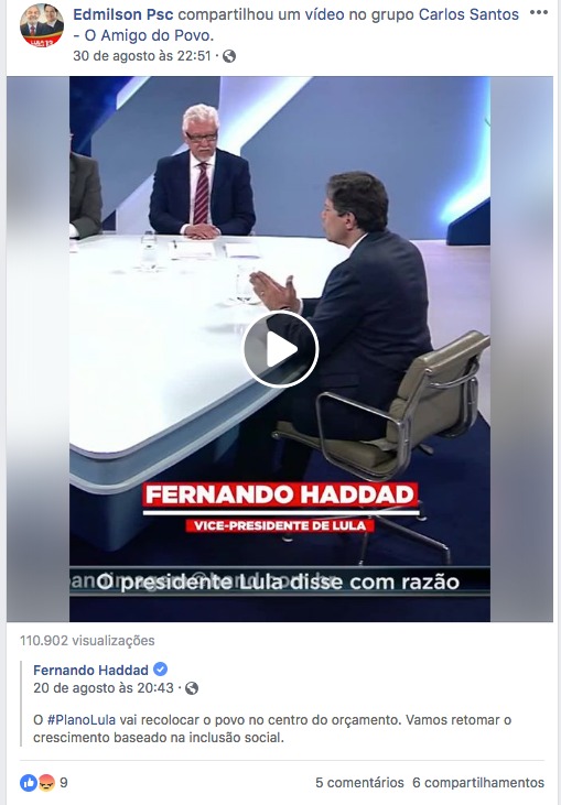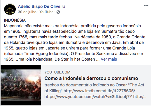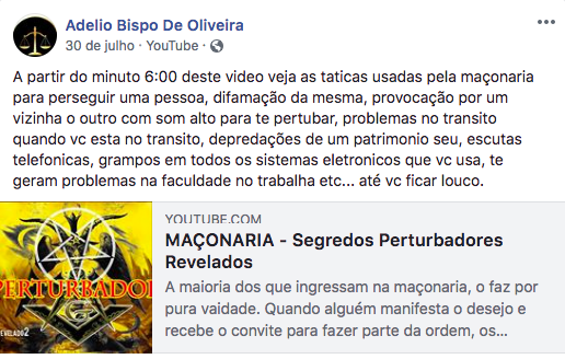 Criticou também Fernando Haddad, “mais um maçom do DCM camuflado em um partido de esquerda”.