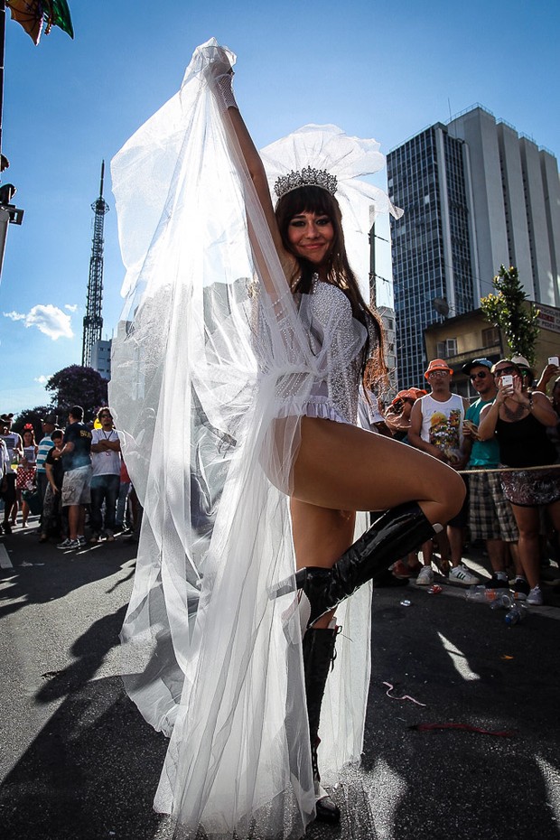 Com sua fantasia de noiva, que usou como rainha do bloco Acadêmicos do Baixo Augusta, no domingo (31), ela viralizou na internet.