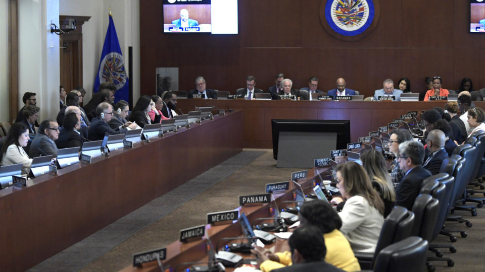 Representantes de todos os países do continente se reuniram na sede da organização em Washington e votaram a favor da resolução, com exceção do Equador, que votou contra, e El Salvador, que se absteve.