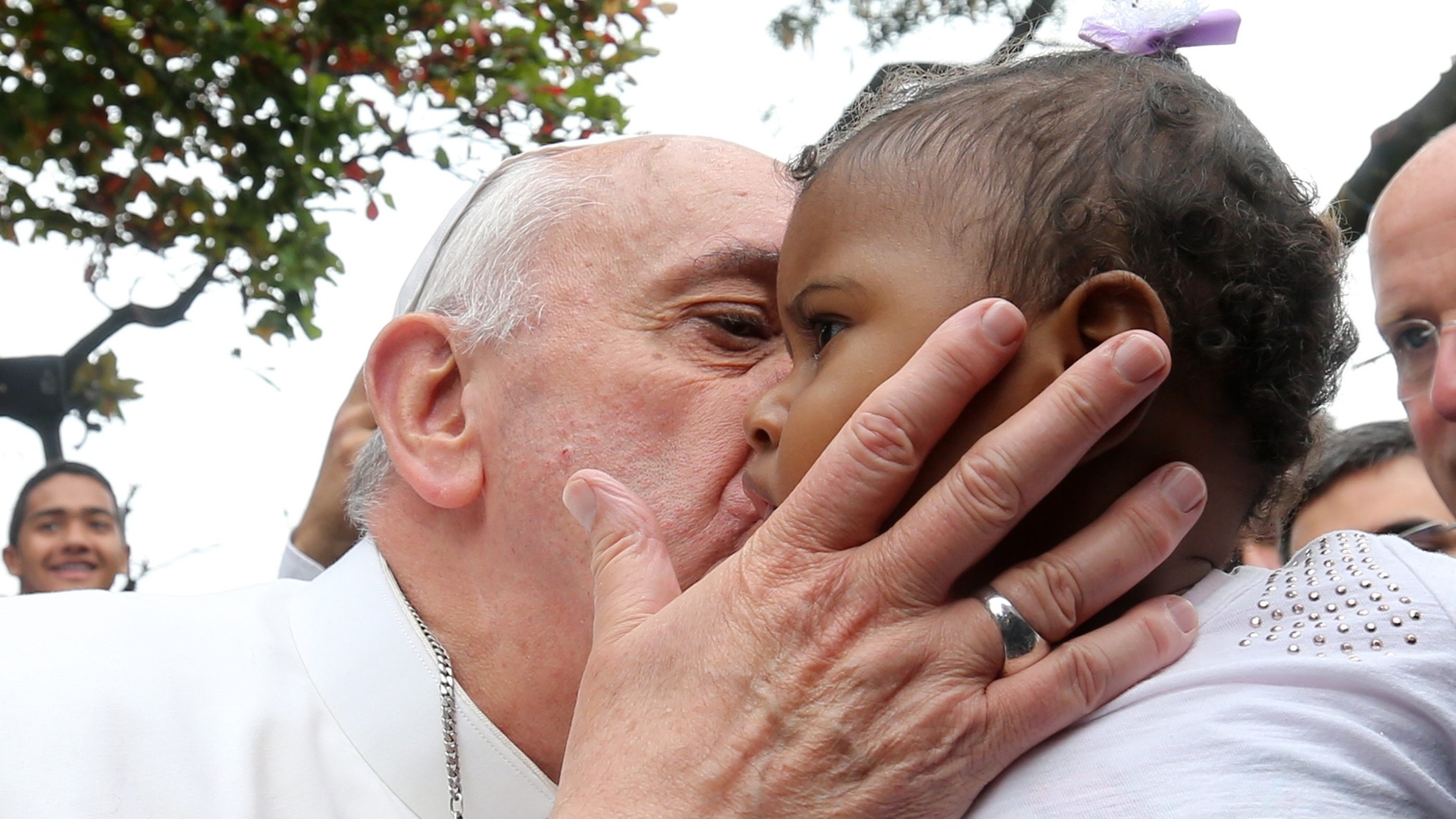 Em visita ao Complexo de Manguinhos, no Rio, o papa Francisco disse que o esforço de pacificação tem que ser acompanhado de justiça social.