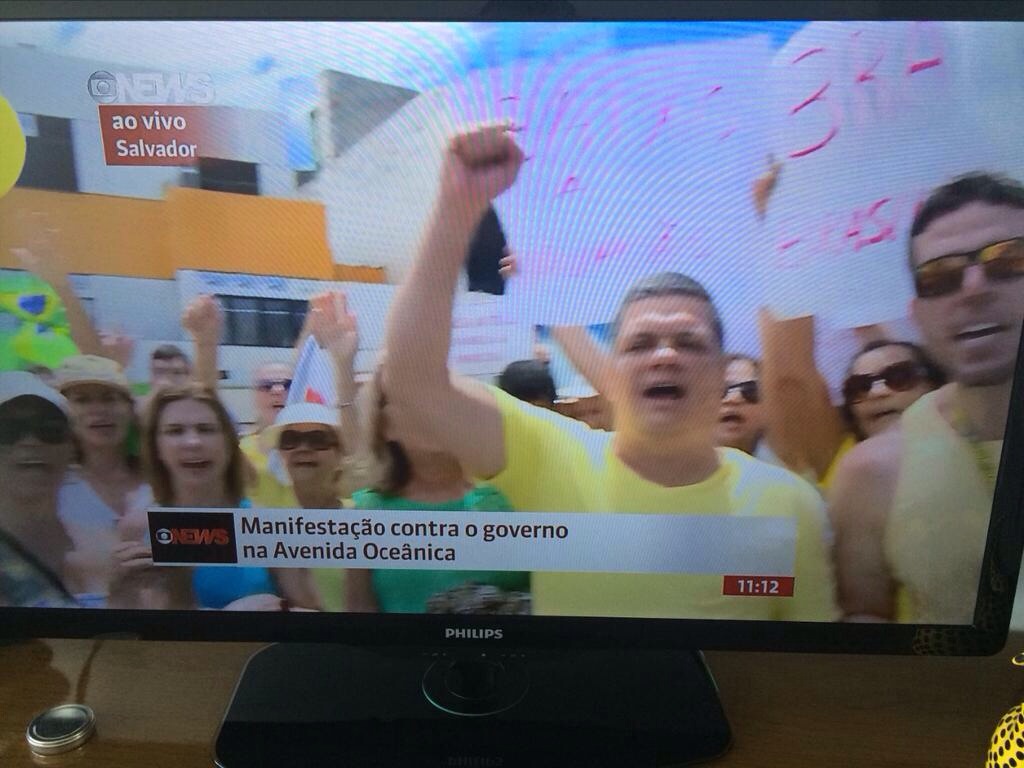 A foto é da manifestação pelo impeachment da Dilma, esse domingo, em Salvador. Não há um único negro na foto, e olha que nem tinha cordas pra separá-los, como no carnaval