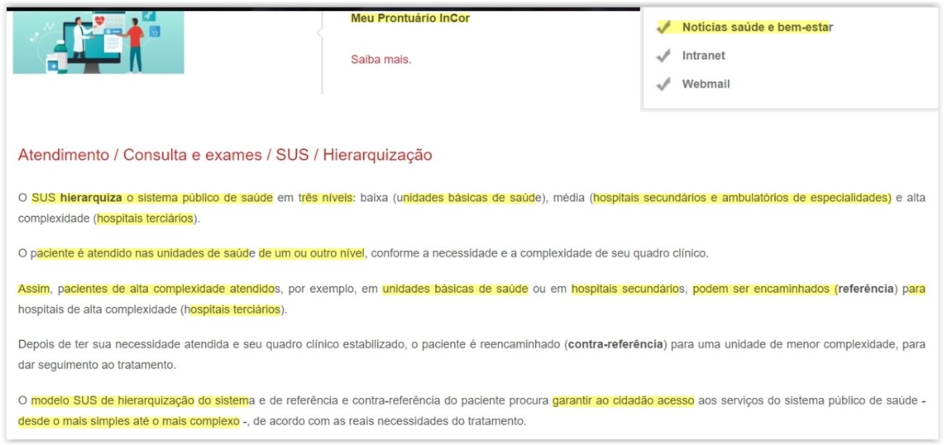 Em seu portal, o InCor explica a hierarquização de modo bem didático: