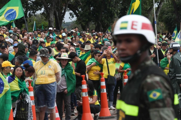 Manifestantes bolsonaristas em ato golpista em frente ao Quartel General do Exército em Brasília