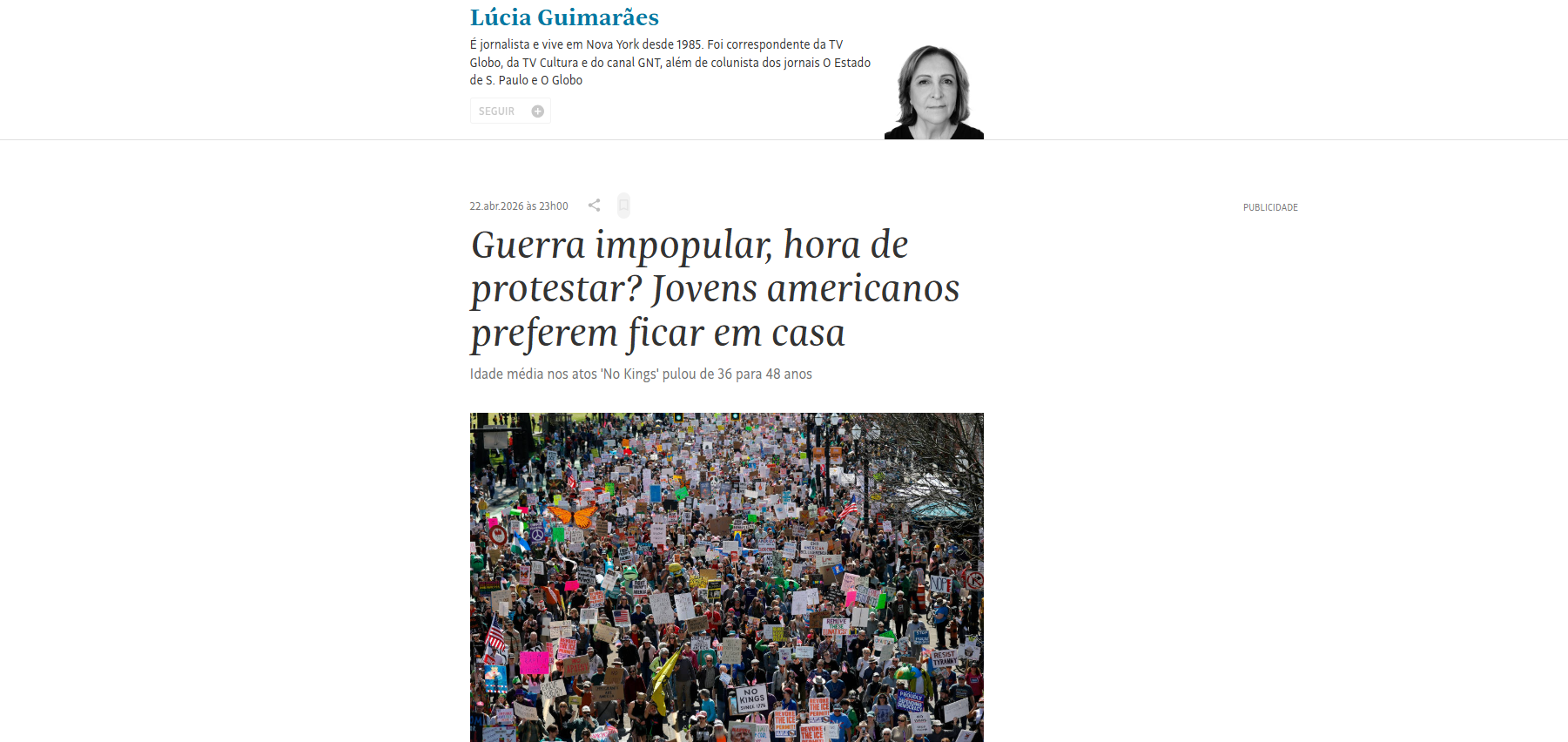 Matéria de Lúcia Guimarães na Folha de S. Paulo. Foto: Reprodução