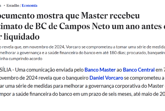 Estadão esquenta manchete sobre ultimato de Campos Neto ao Master. Por Moisés Mendes