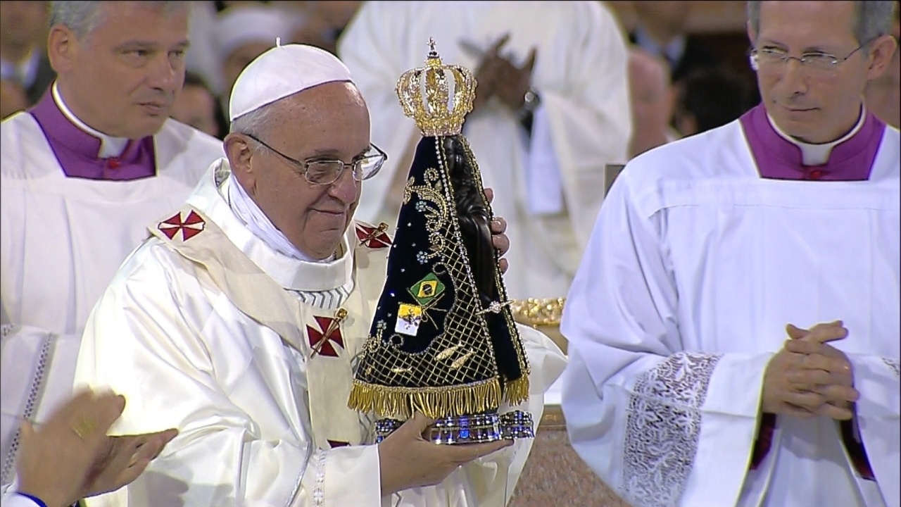 Em julho de 2013, apenas quatro meses após ser eleito, Francisco escolheu o Brasil como seu primeiro destino apostólico. No Rio de Janeiro, participou da 28ª Jornada Mundial da Juventude (JMJ), reunindo milhões de jovens de todo o mundo. Durante a visita, esteve no Santuário de Nossa Senhora Aparecida e destacou a importância da fé popular e da inclusão social. Sua simplicidade, empatia e discursos em defesa dos marginalizados marcaram profundamente os brasileiros.