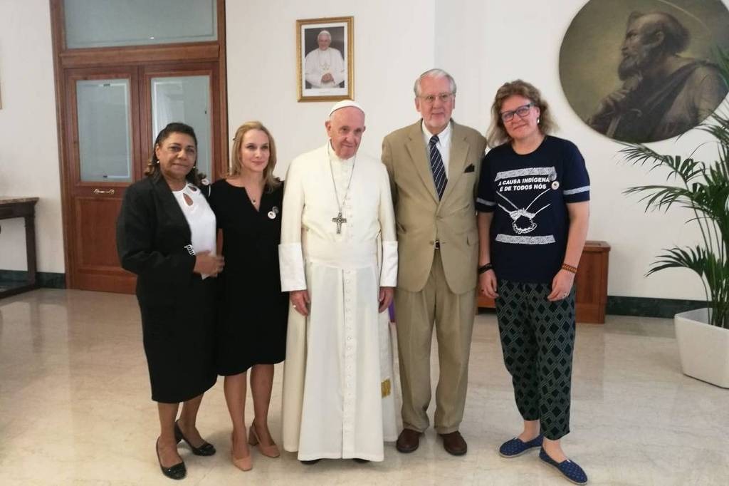 Representando o Conselho Nacional de Igrejas Cristãs e a Fundação Luterana de Diaconia, Cibele conversou com o Santo Padre sobretudo a respeito da religião após o golpe.