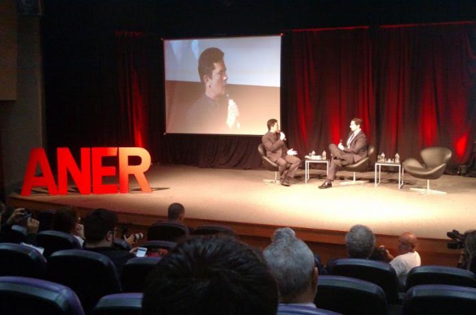 Sérgio Moro foi entrevistado por Frederic Kachar, presidente da ANER e diretor-geral da Editora Globo e Infoglobo. Havia cerca de dez jornalistas cobrindo o evento, e mais cinco câmeras. Moro iniciou elogiando os protestos contra a corrupção.