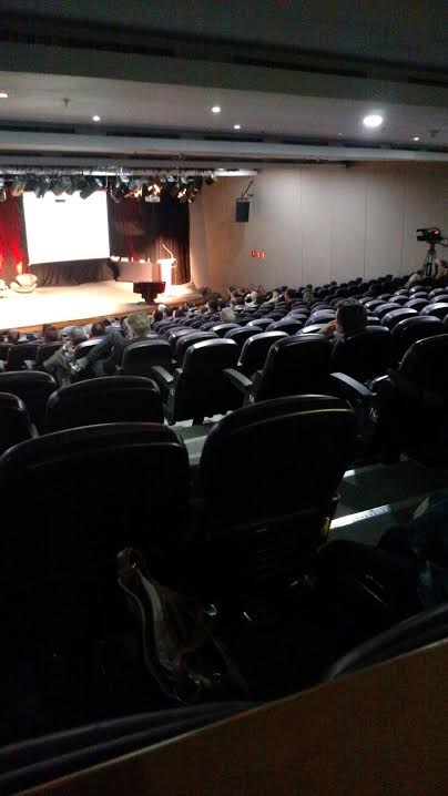 De acordo com o site oficial do hotel Renaissance, em São Paulo, a maior sala para eventos é o auditório com espaço de 496 m² e capacidade máxima de 420 pessoas. Com cadeiras de cor azul confortáveis, o espaço estava vazio no final da tarde de segunda-feira (23) pouco antes da palestra do juiz Sérgio Fernando Moro. A conferência estava prevista para começar às 16hrs e todos – sem exceção – atrasaram.