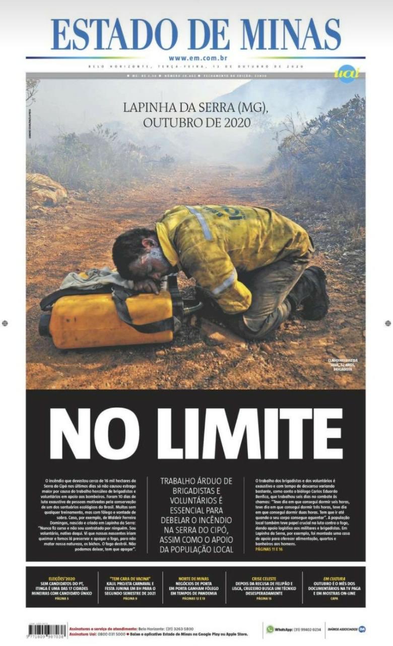 A capa do Estado de Minas, bela em sua dramaticidade (acima), não denuncia apenas a negligência do governo federal no combate aos incêndios que já destruiram um quarto do Pantanal, muitos de origem sabidamente criminosa, porque ateados por fazendeiros criadores de gado.