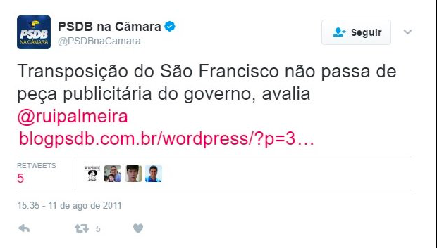 Mas o Eixo Leste ficou pronto, é um sucesso, como apontou Elio Gaspari — e os tucanos farejaram a oportunidade e passaram a tentar faturar em cima, sem medo de ser feliz.