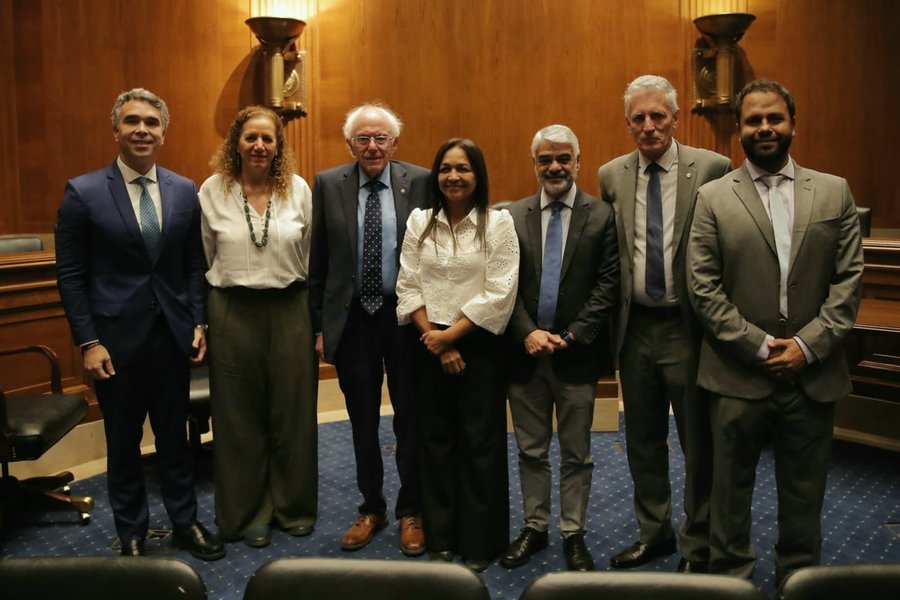 O encontro foi compartilhado nas redes sociais pelo deputado federal Rogério Correia (PT-MG). “Com o senador Bernie Sanders no Capitólio, defendendo uma INTERNACIONAL DEMOCRÁTICA E ANTIFASCISTA, a partir dos atos violentos de 6 e 8 de janeiro e a experiência das investigações da CPI e CPMI das tentativas de golpe”, escreveu o petista no X (antigo Twitter).