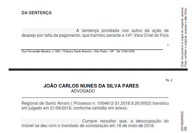 Finalmente, também no ano de 2018, Vilar foi despejado de um imóvel porque não pagava o aluguel. Ele só promoveu a desocupação da propriedade quando foi expedido mandado judicial (processo número 1004612-31.2018.8.26.0002).