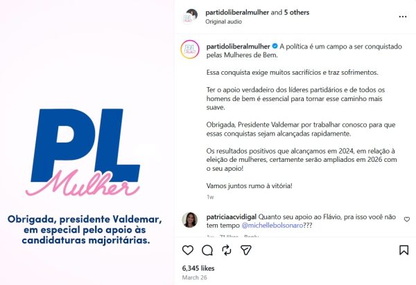 Michelle tem utilizado suas redes sociais para marcar posição em favor de todos os políticos do PL que se colocam do lado contrário de seus enteados nas disputas internas do partido.