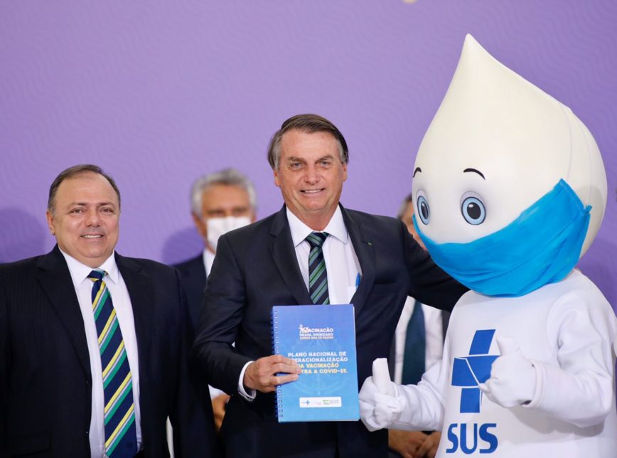 Pazuello, Bolsonaro e Zé Gotinha