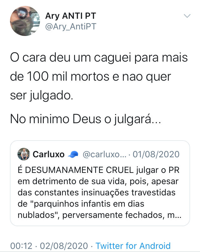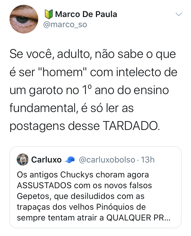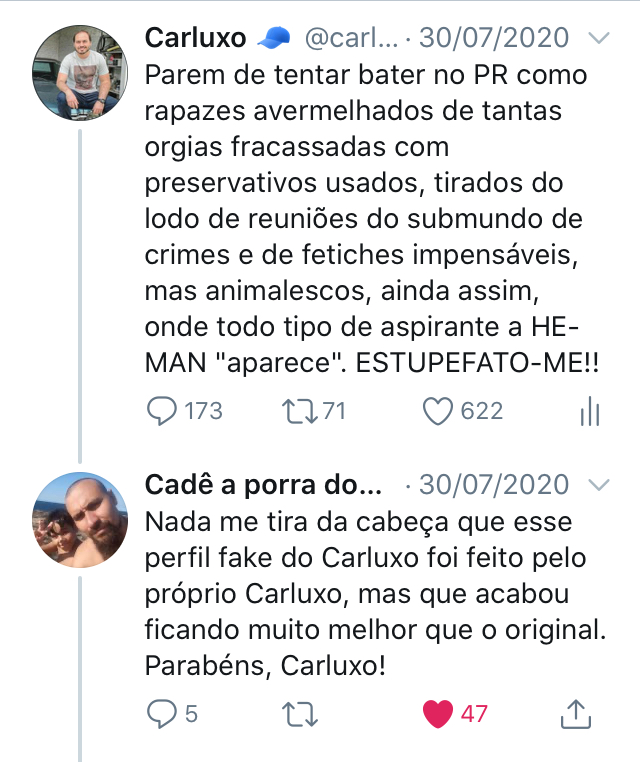 Mas desde julho, o Carluxo original tem um concorrente à altura no Twitter. É Carluxo Bolso, perfil criado para tirar onda com as bizarrices do filho mais esquisito do presidente.